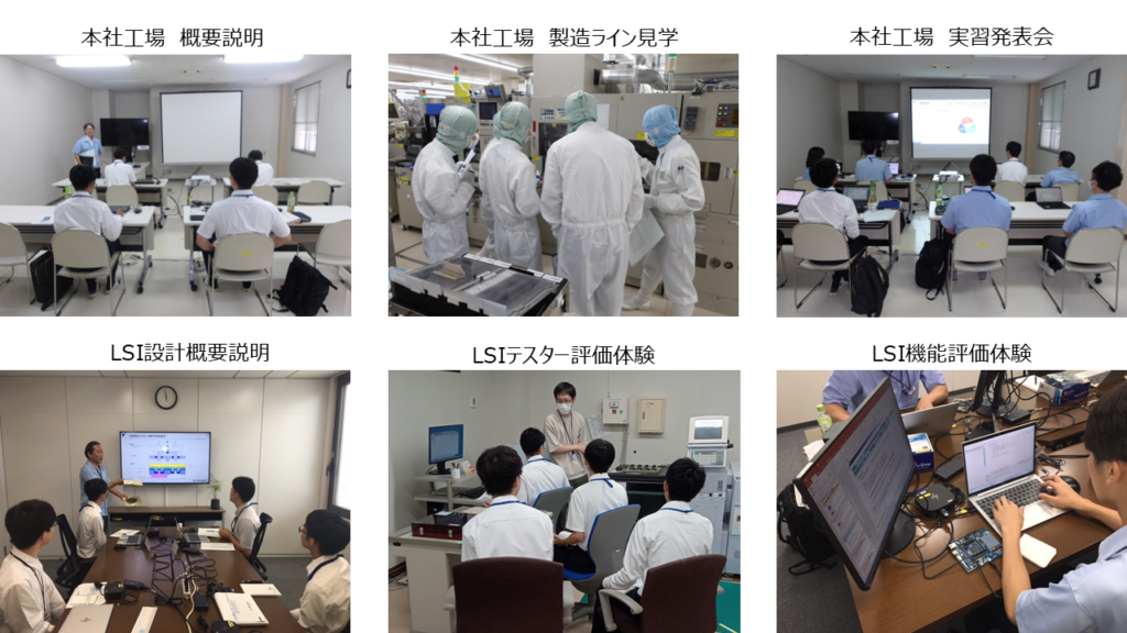 光半導体デバイス・LSI設計の基礎概論を学んだ後、工場でのものづくり体験や、LSI機能評価体験、発表という形で半導体業界の知識を深めたり、仕事内容を知ってもらうようなコンテンツを用意しました。